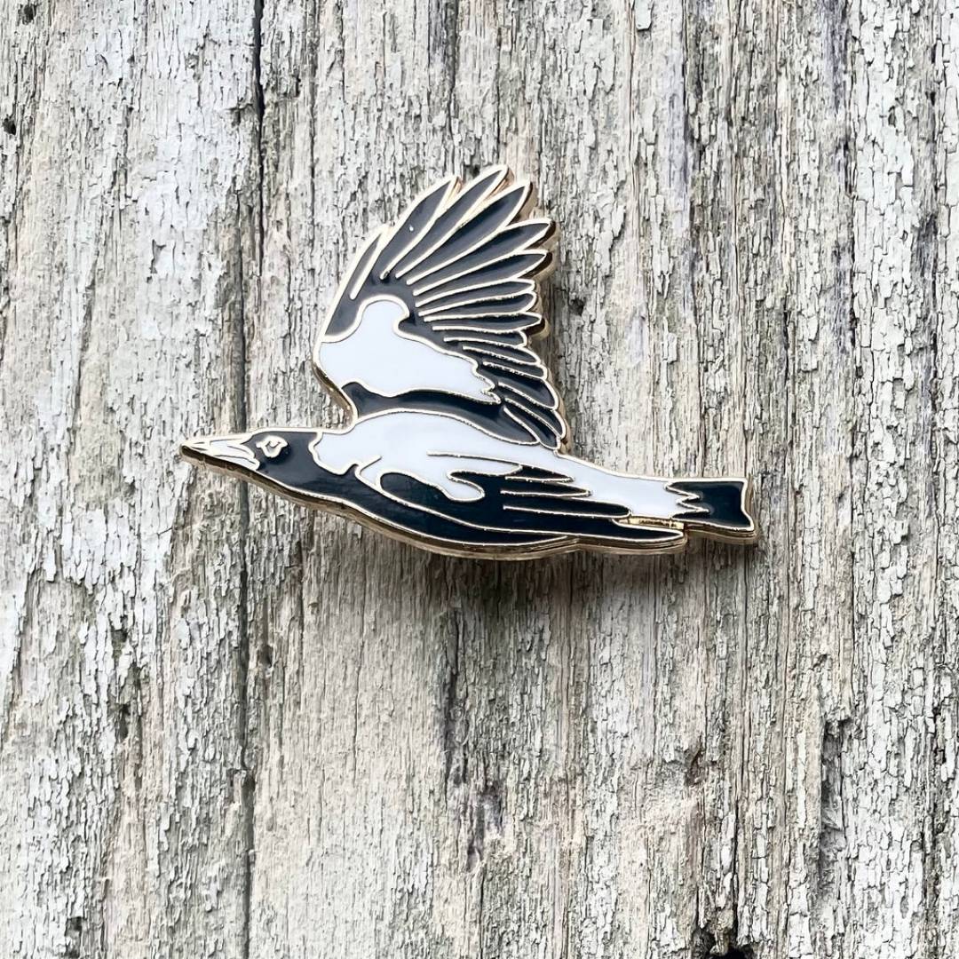 An enamel pin celebrating the iconic Australian magpie - a customer favourite with strong recognition appeal.